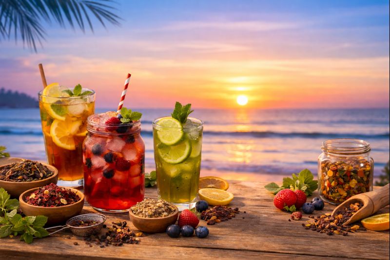J’ai donc voulu recréer cette atmosphère estivale et élégante à travers une boisson douce, naturelle et originale : le thé